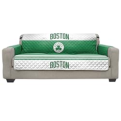 OFFICIALLY LICENSED NBA GRAPHICS and colors bring the big game right into your home DURABLE AND MACHINE-WASHABLE 100% microfiber polyester fabric makes for easy clean-up and care Quilted and water absorbent construction PROTECTS FURNITURE from spills, stains, pet hair and messes 75" x 110" ONE-PIECE DESIGN drapes easily over furniture with the included elastic straps ensuring a snug fit GREAT FOR ANY ROOM in the house: living room, den, office or family game room