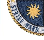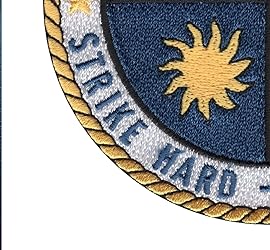 - CGN-9 USS Long Beach Guided Missile Nuclear Propulsion Heavy Cruiser Military Patch STRIKE HARD STRIKE HOME - Blue and orange background with four quadrants and four symbols: a bird carrying an anchor, a shell, a sun, and three crossed tridents. * Iron On Backing * Height: 4.00 inches, Width: 4.00 inches * Shape: Round * Edging: Flat Edge