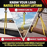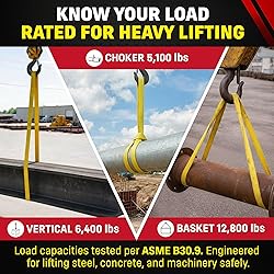 MADE IN USA MATERIALS AND BUILD – Constructed with American-made nylon and assembled in the USA, supporting industrial buyers who require durable construction and traceable manufacturing. ENGINEERED LOAD RATINGS LISTED CLEARLY – Rated for 6,400 lb vertical, 5,100 lb choker, and 12,800 lb basket—addressing customer expectations for accurate load documentation and dependable lifting performance. TYPE 5 ENDLESS LOOP DESIGN – Continuous-loop construction allows rotation of bearing points to reduce wear while providing flexibility, light weight, and strength required in material-handling workflows. 2-PLY 900 WEBBING WITH SERIAL TAG – Heavy duty 900 webbing with traceable serial number and a UV/MR-inhibited ID tag supports inspection protocols and long-term tag durability. BUILT FOR INDUSTRIAL LIFTING TASKS – Flexible, lightweight, non-marring nylon sling suited for material handling, rigging, equipment maintenance, and hoist operations requiring reliable performance.