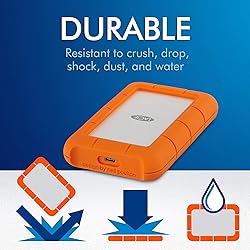 LaCie Rugged USB C es un potente y confiable disco duro externo para ordenadores Mac y Windows. Conéctate rápida y fácilmente a los últimos portátiles y PC usando el cable USB C reversible de Rugged, o el adaptador USB 3.0 incluido para dispositivos USB 3.0 más antiguos. Disfruta de una interfaz USB C de alta velocidad 5Gb/s y afronta con confianza cualquier terreno con resistencia a caídas, aplastamientos y lluvia. Además, aprovecha una membresía gratuita de un mes al Plan Adobe Creative Cloud All Apps para acceder a increíbles aplicaciones de edición de fotos y videos.