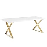 Modway Sector 87" Modern Dining Table with Gold Stainless Steel Metal X-Base in White Gold