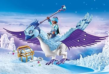 Take a ride on this magical Phoenix and explore the mystical, wintery earth below! Climb onto the Phoenix’ back and flap the movable wings when ready to fly! Kids can also use the included jewels, flowers, and ribbons to decorate the creature's wings and tail To transport the jewelry chest, let the Phoenix grasp the handle with its claw and carry it with you as you soar through the sky Set includes one figure, Phoenix, magic key, jewelry chest, cape, bejeweled staff, and many other accessories Recommended for ages four years and up