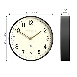 - Dimensions 45 x 45 x 9cm / 17.5 x 17.5 x 3.5in. Designed and made exclusively by Newgate Clocks. A large wall clock with a classic roman numeral dial and a contemporary matt case.. This metal cased wall clock is complimented by metal hands and a glass lens. Now a design classic, the vintage retro inspired wall clock has been brought bang up to date with an injection of modern and contemporary style. Accurate and reliable quartz silent sweep movement with no ticking noise. If your hearing is particularly sensitive in a completely silent room you may hear a very quiet whirring. Requires 1 x high quality branded alkaline AA battery (not included).