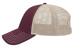 - 6 Panel Low Profile Contrast Vertical Mesh Back Cap 65% Polyester 35% Cotton Front 100% Polyester Back Structured Low Fitting 6 Panel Cap Firm Front Panel Matching Undervisor Plastic Snap Closure
