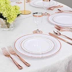 - WDF- We are always to study and try to offer the unique goods to our customer. If you just see them in the desk, you can’t image that they are PLASTIC! PAY FOR HEALTH ! WOW- SAFETY FIRST!!! DURABLE PACKING -Using sturdy wrap and more thick color box can protect the plastic rose gold flatware and plates avoid any damage in transit! GREAT!!!GREAT GIFT-Very nice looking. Make a great gift for people who like easy entertaining and everyday elegance. TIPS&ADVICEDisposable- Save clean up time to washing large quantities of dishes. Reusable-Please clean and dry the tableware,stored in dry place for next use. Hand washable-Please wash durable plastic silverware and plates by hand, don’t put into Microwave oven and dishwasher.Thank you for choosing WDF. Wish you enjoy a HEALTHY & HAPPY LIFE with our products.