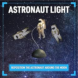 LIGHT UP THE NIGHT: Perfect bedside lamp, nightlight, or conversation piece; this unique lamp lets you reposition the astronaut to float around the moon at the base. WHIMSICAL FUN FOR YOUR SPACE: An unexpected, fun light source is great for bedrooms, the office, dorms, astronomy enthusiasts, or anyone who is a fan of the unique and unusual. UNIQUE: Whether for boys, girls, birthdays, or holidays, this practical and clever item is perfect. Any kid, tween, teen, or adult can appreciate and use this decoration for a themed room or party. DETAILS: The Astronaut can be repositioned around the moon base. Light is 160mm tall, is USB or battery powered (3x AAA batteries not included). ETHICAL SUPPLIER: We carefully select our suppliers. We pride ourselves on a strong ethical trading practice. We constantly review and audit materials used, production, and worker well-being.