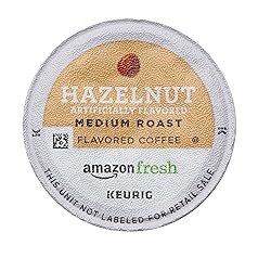 - Made with an expertly roasted blend of high quality 100 percent Arabica beans, our AmazonFresh Hazelnut Artificially Flavored single serve coffee pods are deliciously fragrant and smooth. A medium light roast with toasty hazelnut flavor, this nutty but mellow fellow delivers a comforting cup, day in and day out. Enjoy singular satisfaction in every cup, every time, with AmazonFresh k cups, compatible with Keurig brewers.