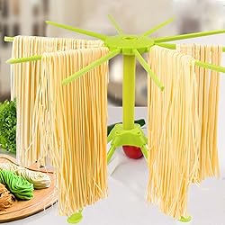 Kitchen Pasta Drying Rack Folding, iPstyle Spaghetti Drying Rack Noodle Stand with 10 Bar Handles Green