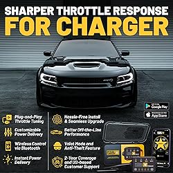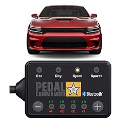 COMPATIBLE WITH DODGE CHARGER (2007-2024): Fits SE, SXT, R/T, Scat Pack, SRT, Hellcat & Daytona. This Pedal Commander throttle response controller optimizes V6 & V8 engines for explosive launches and aggressive street performance. 4 ADJUSTABLE MODES: Features Eco, City, Sport, and Sport+ modes. Eco mode maximizes fuel economy for daily cruising, while Sport+ delivers instant throttle snap for track days and aggressive straight-line acceleration. KEEPS ECU STOCK: Leaves no digital trace on the ECU. Optimizes dead pedal for instant response. Works harmoniously with intakes and exhausts, allowing you to unleash the full roar of your HEMI engine during spirited driving. FAST 15-MINUTE INSTALL: Connects easily without tools. This reversible Pedal Commander clips to your Charger gas pedal sensor. It leaves no trace on the computer system, ensuring a clean modification that keeps factory settings original. APP CONTROL: Manage throttle response instantly with the free Pedal Commander app. Includes subscription-based Anti-Theft to lock the pedal, keeping your Charger secure in parking garages, driveways, and during car meets.