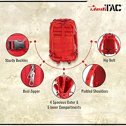 - MediTac Tactical Assault Pack - First Aid Rucksack - 18" Military MOLLE Backpack (Red)