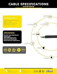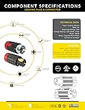 Experience Versatility: Compatible with all California standard 50 Amp locking devices and extensions Professional-Grade Durability: Cable is resistant to sunlight (UV), oils, moisture, and chemicals for use in rugged environments User-Friendly Installation: Locking devices ergonomic design proves ideal for gripping, turning, and pulling Flexible Feel: Rubber 600 Volt, 6 AWG 4 Conductor SOOW cord provides excellent flexibility and resistance Long Lasting Performance: Hard-use Chlorinated Polyethylene (CPE) rubber single-pass thermoset jacket