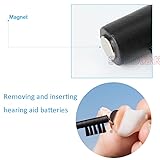 Multi-function cleaning tool, works great at keeping your hearing aids clean. Brush away any wax or skin debris from the surface of hearing aids or ear plugs. Use the wax loop to gently remove wax on the hearing aids, it also can be used to adjust the volume of ITC or ITE hearing aids. Magnet on brush end makes removing and inserting hearing aid batteries easier, convenient for the seniors.