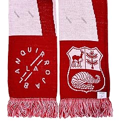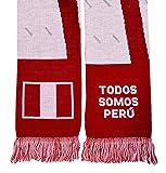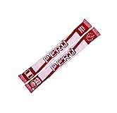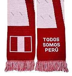 Peru soccer double-sided knit scarf We updated the photos to accurately reflect the scarf colors Classic design including several Peru symbols such as shiny silver coupons--for real! See closeups for yourself. Soft to touch. 57-in. long by 7-in. wide La Blanquirroja - Todos Somos Peru