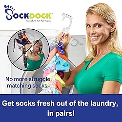 - SockDock is the simple, easy-to-use sock laundry helper designed to keep socks in pairs while washing, drying, and storing. You’ll never have to sort, match or hunt for socks again! It’s the perfect gadget for teaching kids responsibility and improving fine motor skills while reducing parents’ laundry workload. This unique hanging sock organizer saves time, space, money, and makes the home less chaotic. Its adjustable sliders hold and lock dirty socks in pairs. How it works: Hang 1 SockDock on a hamper, doorknob or closet rod. After taking off socks, place the dirty pair between 2 sliders on the SockDock, starting at the bottom. Adjust the top slider down to socks. Once the SockDock is full of dirty socks, remove the hanger and toss the SockDock into the washer & dryer right alongside all your other laundry. Hang the SockDock with clean socks in your closet, and you’re all set. Never fumble for the correct pair in your sock drawer again!
