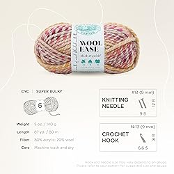 - Lion Brand’s soft and warm Wool-Ease Thick and Quick Yarn comes in beautiful, rich colors—from light pastels to deep earth tones to multicolor skeins —that add depth to any knitting or crocheting project. This thick yarn is made from 80% acrylic and 20% wool and is ideal for making cozy items such as warm scarves, bulky blankets, and thick sweaters. It’s available in multiple pack sizes and will help you impress your friends and family with the lovely hue and style of your crafting, knitting, crocheting, and weaving projects. Each ball of this yarn weighs 6 oz. (solid colors) or 5 oz. (prints/stripes/metallics) and is 106 yd. long (solid colors), 87 yd. long (prints/stripes), or 92 yd. long (metallics). It is rated CYC #6 super bulky and works well with size 13 knitting needles and size N-13 crochet hooks. This soft yarn can be dry-cleaned or machine washed and dried and will become one of your favorites when you add it to your crafting kit. Our mission at Lion Brand Yarn Company is to spread warmth, comfort, and inspiration to the world by providing products and social engagement that promote the joy of knitting, crocheting, and weaving. We offer high-quality yarn varieties in unique colors and provide patterns and project ideas to inspire you to create and express yourself. Whether you’re a new hobbyist, an expert crochet artist, or a seasoned knitting enthusiast, we’re with you every stitch of the way.