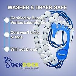 MULTIPURPOSE SOCK HANGER - SockDock is the patented sock laundry organizer and storage hanger that lets you wash, dry, and store with one simple tool. Perfect for keeping socks together so you’ll never have to sort, match, or hunt for socks again! Imagine how much time you’ll save…and how much space you’ll save by hanging the paired socks in the closet using our sock storage organizer. EASY TO USE - Our user-friendly sock holder is fun for all ages! Teaches kids responsibility and improves fine motor skills. Could also make a great gift for teens and young adults headed off to college. Adjustable laundry sock holder design works with socks of all sizes and styles: adult, kid, toddler, and baby, including no-show, low cut, ankle, dress, and athletic socks. PLENTY OF SPACE - Each SockDock holds 9 pairs of socks and adjusts to keep everything together. You’ll receive 2 SockDocks (1 for dirty socks, 1 for clean) so cleaning socks becomes a breeze. Also works with masks, headbands, gloves, scarves, onesies, mittens, lingerie, delicates, and other small items. DURABLE - Unlike other sock hangers or sock rings, SockDock has a flexible design, meaning it won’t break in the washer or dryer. And unlike sock clips, SockDock is a completely adjustable sock keeper so thin socks, thick socks, or other bulky items will stay together throughout the whole process! HANG ANYWHERE - SockDock’s cool foot-shaped sock drying hanger comes in blue, red, pink, and dark blue. It will hang anywhere: in the closet, on a doorknob, on a coat rack, and even on the laundry hamper! Hang the sock sorter low so the kids can be independent. Let the entire family work together to ensure no sock disappears in the wash ever again!