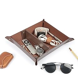 EXQUISITE LEATHER CRAFTSMANSHIP: Londo Leather Tray Organizer is crafted with high-quality PU Top Grain leather attached with fine and durable stitching, giving it a sleek look and a durable body, combining the pleasant feel and the handsome look of leather without sacrificing versatility and convenience. STYLISH STORAGE: The Londo Leather Tray Organizer stores your equipment conveniently while keeping them easily accessible. A practical and functional accessory for your home and office. It can be used on any desk and the larger office spaces. DIMENSIONS: The Londo leather tray organizer measures 7.87 x 9.45 x 1.97 inches (width x length x height). Takes up little space to keep your small but important items in place, not only for home and office use but also for travel. It is also easy to clean and durable for use. MULTIPURPOSE: This Londo leather tray is great for your nightstand, closet, console table, or even as a desk organizer. Made of high-quality leather, the jewelry tray organizer is an economical choice in terms of waterproof, scratch resistance, and durability. PERFECT FOR EVERYDAY USE: The Londo leather tray organizer is designed for everyday use and helps you easily reach your stuff whether you are at home or in the office. Designed and crafted with the aim of producing a functional product and a practical and modern accessory that you can rely on.