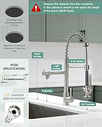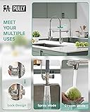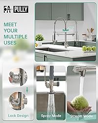 HEAVY DUTY DESIGN: Fapully kitchen sink faucets are designed to durably handle the rigors of a busy kitchen. Our pull-down kitchen faucet features a high-quality, sturdy all-metal body and handle, rust-resistant finishing, heavy-duty spring, and a superior-grade ceramic cartridge that can withstand a 500,000+ close and open test. ENJOY GREAT FUNCTIONALITY: Kitchen faucet with pull down sprayer and a separate pot filler spout, the kitchen faucets allows you to handle all types of tasks. The spray head and stream spout can swivel around 360 degrees for full sink access, and the pre-rinse commercial faucet ensures high pressure while still saving on water. EASY TO USE: We’ve equipped this pull down spray kitchen faucet with a single handle that conveniently controls both water volume and temperature. You’ll love the smooth swivel action, stress-free pull down, and secure docking of the faucet pull down sprayer when not in use. The ingenuity and convenience of the sprayer lock design allow you to utilize one hand to do while when you are washing. SPRUCE UP YOUR KITCHEN: Exuding a contemporary industrial feel, our single lever kitchen faucet is a great addition to your home. The mix of industrial aesthetics and eye-catching finish makes this high arc faucet an impressive focal point of your kitchen.