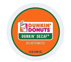 - Whether you're on an afternoon cup at work or curling up with a relaxing book during a weekend evening, nothing warms you like a cup of coffee. With Dunkin' Donuts pods of coffee, you can get the flavor you love without the jolt of caffeine. Dunkin' Donuts decaf coffee is a decaffeinated version of Dunkin' Donuts delicious original. Decaffeinated coffee K-Cup Pods have a built-in coffee filter - no measuring and no mess. Dunkin' Donuts K-Cups are designed for single-cup brewing systems. Coffee pods contain 0.4 oz of coffee each and come in a box of 16. Dunkin' Donuts is not affiliated with Keurig or K-Cup. K-Cup is a registered trademark of Keurig Incorporated. Formulated with 100% Arabica coffee beans for a bold taste.