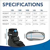 CHECK SIZE BEFORE ORDERING — SEE SIZE CHART For the best fit, please measure foot length and compare with our chart before purchasing. If you’re between sizes, choose the larger size for comfort. LIGHTWEIGHT FOR ITS CATEGORY Size Extra Small boot weighs 1.8 lbs total. CAM walkers are meant to be supportive, so a slight “lift” feeling compared to a normal shoe is expected. LEFT OR RIGHT FOOT USE Universal design fits either foot. Straps are fully adjustable for swelling, bandages, or dressing changes. INCLUDED USER GUIDE FOR PROPER FIT Each boot comes with a step-by-step User Guide showing how to tighten the straps, secure the liner, and adjust the air bladder for a snug, comfortable fit. Proper application greatly improves walking comfort and stability. PROMOTES A MORE NATURAL WALKING MOTION Rocker bottom sole and shock-absorbing insole help support a smoother stride when used correctly. Please note: walking in a medical boot may still feel different from normal footwear. DURABLE, MEDICAL-GRADE SUPPORT Sturdy molded plastic uprights with steel reinforcement provide long-lasting stability and protection throughout recovery. INTENDED USES (DOCTOR RECOMMENDED) Ideal for: Acute ankle sprains Soft-tissue injuries Stable foot, ankle, or lower-leg fractures Post-operative recovery (Not designed for high-impact sports or uneven-terrain activities.)