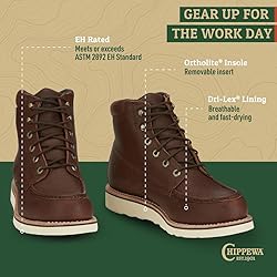 Chippewa Edge Walker 6 Leather Work Boots for Men - Waterproof Lace-Up Work Wedge Boot - Cushioned Soft Toe - Lace-Up Closure for a Secure Fit - Wide Toe Box with Rubber Outsole