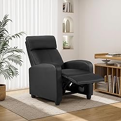 PUSH-BACK RECLINER CHAIR: This recliners adjusts from 90 to 160 degree with a gentle push, the home theater seating for adults lets you sit upright for reading or fully recline for naps at home, living room, bedroom, this chair perfect for unwinding after long days. MODERN LEATHER SOFA DESIGN: This water-resistant leather recliner features a high-density sponge and soft faux leather for durable comfort that upgrades your home, living room seating furniture with elegant style. VERSATILE FOR ANY SPACE: Designed to suit both personal and commercial seating furniture use, this recliner chair fits effortlessly into home, living rooms, bedrooms, reading rooms, hotels, lounges, or bars. FAST & TOOL-FREE ASSEMBLY RECLINER SOFA: Easily set up this accent chair in just minutes. No tools required to assemble this leather recliners. Snap the back onto the recliner base, twist in the chair legs, and enjoy one of the comfiest seating in your home, living room, bedroom. FAMILY-FRIENDLY RELAXATION furniture: This home theater seating designed for comfort and versatility, this recliner generously padded offers the perfect spot to unwind, great seating for watching movies, reading, or afternoon naps and enjoy your time at home, living room, bedroom.
