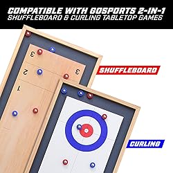 - Set of 8 replacement rollers (4 Red + 4 Blue) for GoSports Shuffleboard and Curling 2-in-1 tabletop game. These premium pucks are the perfect choice for Shuffleboard and Curling enthusiasts, whether you are replacing Lost pucks or looking for more to play regulation style games. The pucks are approximately 20mm in diameter or about the size of a nickel. This set is made from smooth ball bearings and feature a sturdy plastic coating to ensure longevity. If you are looking for a full tabletop game check out our GoSports Shuffleboard and Curling 2-in-1 tabletop game.