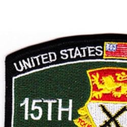 - United States Army 15th Cavalry Regiment Pocket Military MOS Patch 1957-1967 * Height: 3.25 inches, Width: 4.50 inches * Shape: Custom * Edging: Merrowed Edge * Sew On (plastic backing)