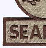 - United States NAVY Mobile Construction Battalion SEABEES Military Patch DESERT * Height: 4.50 inches, Width: 4.25 inches * Shape: Rectangle * Edging: Flat Edge * Iron On