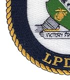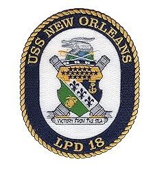 - LPD-18 USS NEW ORLEANS Amphibious Transport Dock Ship Military Patch VICTORY FROM THE SEA * Height: 5.00 inches, Width: 4.00 inches * Shape: Oval * Edging: Flat Edge * Iron On