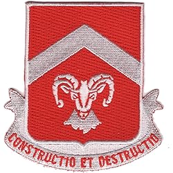 - United States ARMY 40th Engineer Battalion Military Patch CONSTRUCTIO ET DESTRUCTIO CHEVRON ABOVE RAMS HEAD * Height: 3.50 inches, Width: 3.25 inches * Shape: Custom * Edging: Flat Edge * Sew On (plastic backing)