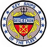 - DESRON 4 Destroyer Squadron KEY SHIPS OF THE FLEET Navy Patch * Height: 4.88 inches, Width: 4.88 inches * Shape: Round * Edging: Merrowed Edge * Sew On (plastic backing)