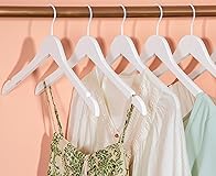 Elegant Design: Featuring glossy white smooth finish and all white hooks, these wooden hangers brought an elegant touch to your closet and aslo great for personalizing bride hanger A-Grade Material: The hangers are made of high-quality Schima superba from renewable forest, so they are more durable than plastic hangers, allowing you to hang heavy coats or jackets without worrying about the hanger warping or breaking Precisely Cut Bigger Notches: The specially designed 0.5-inch notches are bigger than normal 0.38-inch notches, so the hangers will prevent your camisoles, strap dresses or boat neck shirt from slipping off; and they are well sanded without any roughness Ergonomic Design: Shoulder contours of the hanger mimic human shoulders, keeping your clothes in nice shape and wrinkle free 360° Swivel White Hook: The white plated metal hook is rustproof and rotates 360 degrees, allowing you to easily turn the hanger to any angle for picking up garment with a breeze Great Craftsmanship: The hangers are perfectly sanded and polished to protect your clothes from scratching; The surface is smoothly finished and coated with glossy white paint to prevent moisture Versatile Use: These hangers are perfect for hanging all kinds of clothing, such as shirt, coat, jacket, summer dress, tank top and so on