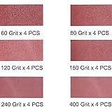 Made with Premium Aluminum Oxide grain. It is mainly used for wood / aluminum / non-ferrous metal / glass / plastic / stone ect. Antistatic, washable plus an additive in the resin to resist loading. Other grit sanding belts are also available for sale.pls visit our M-jump store. 24 PCS Assortment includes 4 each of 60 / 80 / 120 / 150 / 240 / 400 Grits.