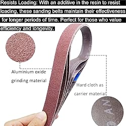 - This is a high quality sanding belt is designed specifically to provide outstanding life and durability for many wood belt sanding applications. It is made with a special open coat A/O grain.and a strong X weight poly cotton cloth backing. Belts are anti-static, washable plus it has an additive in the resin to resist loading. Package included: 4 x 60 Grits 4 x 80 Grits 4 x 120 Grits 4 x 150 Grits 4 x 240 Grits 4 x 400 Grits Size: 1 inch x 30 inch