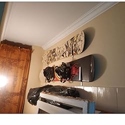 The kit comes with 2 Racks and 4 screws and 4 screw covers for one snowboard. No snowboard included. Horizontally display - Suitable for snowboards to hang horizontally. 5MM Thick Aluminum - Our rack is made of 5MM thick aluminum . Very strong and Durable. Hold your snowboard strongly without swaying No Falling - The rack is very long , hold the board strong . No More worrying about falling down. No more tripping over stray boards. Great for Home and Office Snowboard Storage and Display Thick Felt Protection- The surface is covered with thick felt, which protects your board braces from getting damaged while resting in the rack Fit most snowboards - The distance between the hanger and the wall is 1 inch(25 MM). Suitable for most snowboard. Before buying, please check the thickness of your board. Note:Please take the board out vertically and slowly. Please don't take the board slantly.