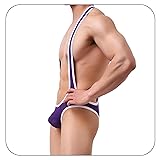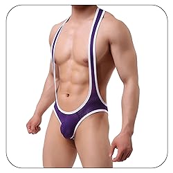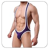 - Product Specifications:Name: Mens Thong Leotard Bodysuit Stretch Singlet Wrestling Jumpsuit One-Piece G-string UnderwearMaterial: 80% Polyamid+20% ElastineColor: White/Red/Black/Navy/Green/Purple/Skyblue/GreySize: As shown in the Size Chart picture; Please confirm the size carefully before ordering.Washing Instruction:1. Hand wash in cold water, line dry, no bleach and iron2. The highest water temperature not exceeding 30 degrees CelsiusFriendly Customer Service: Any problems about this item, please contact us freely, thank you!Package Include:1 jumpsuit