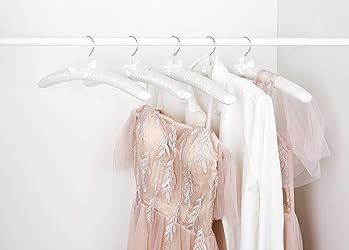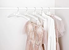 - Amber Home 5 Pack 17 Inch Large White Satin Padded Hangers for Women Clothing, Anti Slip Cushioned Hangers for Sweaters, Silk Hangers Fancy Dress Hangers for Wedding, Delicate Cashmere