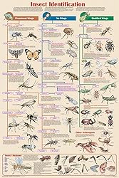 - Insect Identification Educational Poster 24.5x36.5 - Laminated This poster is 24" x 36" with a .25" laminate border and makes the perfect addition to classrooms, studies, offices, and children's or student's bedrooms. The lamination protects it from tears, dirt, dust, and moisture for many years of enjoyment. This chart presents all the insect orders through a brief description accompanied by detailed pictures of one or more species. A section on anatomy identifies important physical characteristics. A unique branching system permits the novice to identify a specimen to the order level (beetle, bee, bug, butterfly, etc.). This poster is extremely popular with collectors, kids and educators. It is widely used in schools and by collectors. This poster contains a large section devoted to insect anatomy. It begins with a grasshopper with all of its various body parts identified. It is accompanied by illustrations showing the variation of body parts between the various species. Compare the head of the butterfly to that of the beetle, butterfly and fly. Notice the major differences in their mouth parts. It is such characteristics that are used to determine classification. A glossary provides information on each body part. Also included in the poster is a section that introduces arthropods. They are animals that have external skeletons. In addition to insects, the arthropods include spiders and the crustaceans. Several are shown.
