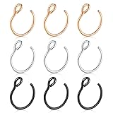 ✿[Hypoallergenic] These fake faux nose rings are made of 316L stainless steel. ✿[Total 9pcs] 9pcs fake septum nose ring : 20 gauge (0.8mm), Inner Size is 5/16" (8mm); could be used as fake septum piercing rings and faux nose ring hoop ✿[Fashion Fake Piercing Jewelry] These fake nose hoops and faux septum rings for women men are simple and elegant for daily jewelry. ✿[Using] Surgical steel nose ring can be used as earring hoops, nose rings, lip rings, cartilage earrings, septum rings, nose studs etc