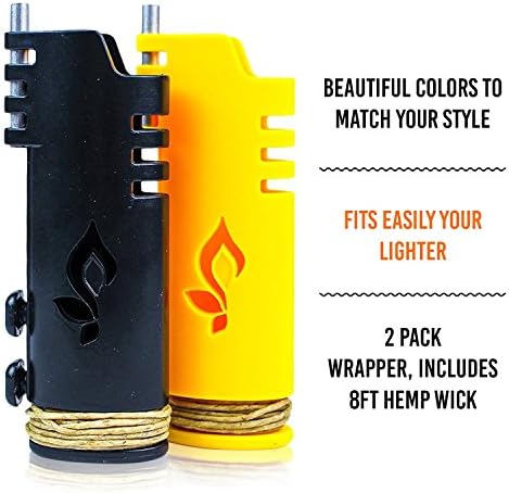 Hemp Wick Lighter 2 Pack Wrapper, Includes 8FT Hemp Wick by Hemplights USA (Black/Grey)
