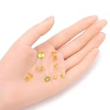 Material: 18k yellow gold plated brass; Brass provides good formability, high workability and durability, and resistance to corrosion in comparison to other metal alloy Quantity: 200pcs earring posts and 200pcs earring backs Stud setting area/flat board size: about 8mm (0.31 inch); The pin attached to the flat board is about 12mm (0.5 inch) long with diameter 0.7mm (21 gauge or 0.03 inch) - standard pin size/wire gauge for earring post Color: 18K yellow gold Safe craft and jewelry making supplies; This item is packaged into Adabele’s trademarked bag