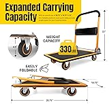 MaxWorks 80876 Foldable Platform Truck Push Dolly – 330 lb Capacity, Black & Yellow Heavy-Duty Fold-Down Handle Utility Cart for Home, Garage, Warehouse & Workshop