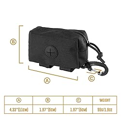 Durable & Water Resistant Material: Mil-spec 1000D nylon series for extra durability and dirt/water/abrasion resistance. Complete your tactical dog accessories with OneTigris dog harness and dog collar Quick Access Waste Bag Dispenser: With zippered snag-free opening and A+ cross-style exit for quick pull out & easy access to poop bags Spacey Interior: Able to store 1 to 2 rolls of the poop bags in case the use up. Extra space within for carrying keys, change, etc. you can use it as a mini key wallet as well Versatile & Stylish: Top swivel clasp & MOLLE compatible straps with double hook-and-loop strap for attaching to your pup’s gear horizontally or vertically. Simply attach to dog leash or molle dog harness or any backpacks etc,. Great for dog walking, dog training, hiking with dogs or vacation etc. Works great for small medium to large dogs like Bulldog, German Shepherd, Alaska, Samoyed, Shepherd, Su Mu, Golden, Tibetan mastiff, etc