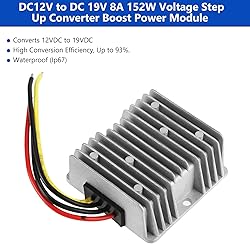 - Features:This is a non-isolated DC power converter module with long service life.High power and stable output, it converts 12VDC to 16VDC.Sturdy housing is small and easy to mount; sealed with silicone, it is (IP67), dust and vibration . components ensures high conversion efficiency, up to 93%.It supports over current, over voltage, over temperature and short circuit . Specifications:Model: MKX-DC12V-19VType: Non-isolated voltage converterInput Voltage: DC12V (9~22V wide voltage)Output Voltage: DC19V±0.25V Output Current: 8A Output Power: 152W No-load Current: 35mA 45mA Efficiency: ≥93% IP Rating: IP67 (short time immerse) Operating Temperature: -20℃~80℃Size: 7.5*7.5cm/3*3inWeight: 251g(approx.) Package Includes:1 x Voltage Converter Note: Please be careful and connect wires correctly, otherwise the module will be damaged.