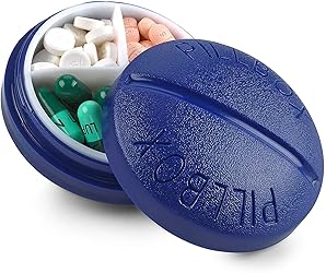 ☆ MEET YOUR NEW DAILY PILL CASE: Our MEDca Round Pill Box fits perfectly into your daily routine. Designed with a removable lid and four surprisingly large compartments you'll see why its so easy to instantly fall in love with this easy to use pill organizer case for all your daily vitamins, supplements and medications. It's convenience really makes your pill planning a breeze! ☆ PROBLEM SOLVED: This pill organizer from MEDca is just what the doctor ordered! It is the perfect pill reminder for the person who wants to lighten their purse and no longer sound like a walking pharmacy carrying the entire medicine cabinet when going out places. Each inner compartment is great for those who take multiple meds, vitamins or supplements thought out the day ☆ BRILLIANT NEW CIRCULAR DESIGN: Unlike other pill organizers which don't offer removable lids or bulky rectangular designs the new MEDca Round Pill Reminder's circular design makes loading simple and easy because the entire lid detaches to load each compartment at the same time. No more opening and closing lids that can easily disorient you and make you lose track of your medications. Now you can keep your medication in one convenient place that you can see. ☆ BPA FREE! TOUGH UNBREAKABLE MATERIAL: If you have been looking for a pill organizer that is BPA Free, Non-Toxic and one of the most durable on the market to date then your search is over! Thats because our travel pill container is only made from the highest food grade extra durable PP Material and is BPA Free. Because our round pill case is made this way it means that you can easily travel with it and for faithful usage and protect all of your medications. ☆ UNMATCHED PERFORMANCE: With MEDca you can be confident that your satisfaction is always our #1 priority and that we'll do everything in our power to make sure you have an excellent customer experience. Our MEDca pill reminder is made of rugged and food grade plastic. It won’t break easily even if mishandled. This mini pill holder is the perfect size and weight for everyone who travels and is guaranteed to last you a lifetime.