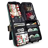 [WRAPPING PAPER STORAGE CONTAINERS] - Stores up to FOURTEEN 40" Wrapping Paper Rolls [6 RIBBON ROLLS] - Holds up to six XL-sized rolls of ribbon [5 ZIPPERED POCKETS] - Organizing gift bags with tissue paper, bows, name tags and more [POCKETS FOR TOOLS] - Holds all your scissors, markers, and pens [SELF STANDING] - Kickstand legs for standing support during use