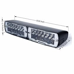 6 Colors LED Chip: White, Blue, Red, Amber, Pink, Red/Blue ON/OFF Button, Select Pattern Button Dimension: 8" ( width ) x 1.6" ( height ) x 5.1" ( depth ) 18 different selectable strobe patterns with a push of a button to cycle through modes. Easy To install ,with 3 suction Cups For Quick Screen Mount