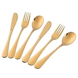Bisda Flatware Silverware sets, 6pcs 18/8 Stainless Steel Student Cutlery Serving for 2, BPA-free Self-feeding Safe Kitchen Utensils, Mirror Polished (Gold)