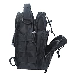 DIMENSIONS APPROX: 9.5"H x 7"L x 5"W INCLUDES: 1 main compartment and 2 small compartments inside, 2 pockets at front and 1 pocket at back, compact enough to keep your accessories organized. FLEXIBILITY: This pouch has D-rings on the back that can be used as additional attachment points. Two-way opening zippers in main compartment for access to supplies easily and quickly. The sling pack has adjustable and comfortable shoulder strap. MULTIPURPOSE: This standard pouch is used for hikers, campers, and other outdoor enthusiasts to carry supplies. It is great to use as day pack or EDC bag hand bag, tactical pouch, first-aid kit, diaper bag and so on. It is very handy and convenient. The little small pack, popular with lots of customers, definitely can meet your most of needs.